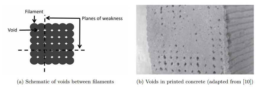 Voids between filaments of printed concrete
