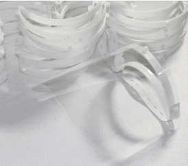 The AXIOM process works in three steps: mill, fill, and finish. This allows for plastic parts like face shields to be fabricated quickly during sudden surges and peak demand from the medical community, especially during a viral pandemic. It takes less than one minute to produce a polypropylene part, with smooth surfaces for easy sterilization—a critical requirement in the medical setting.