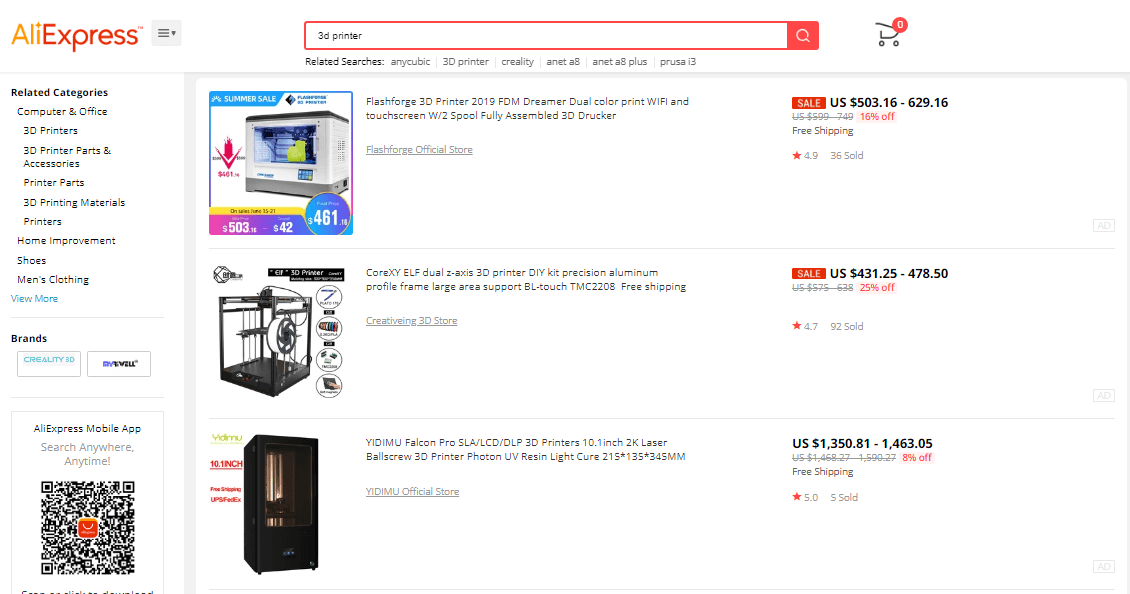 “The first five months of this year have already completed the sales of 500,000 units last year. The shipments of this year are expected to reach 3-4 times last year,” said Chen Chun, CEO of Chuangxinwei—a company selling 3D printers through the AliExpress service. “Because the orders on AliExpress skyrocketed from January to March, the production capacity was under great pressure, and even the office staff went to the factory to help with production and shipment.”