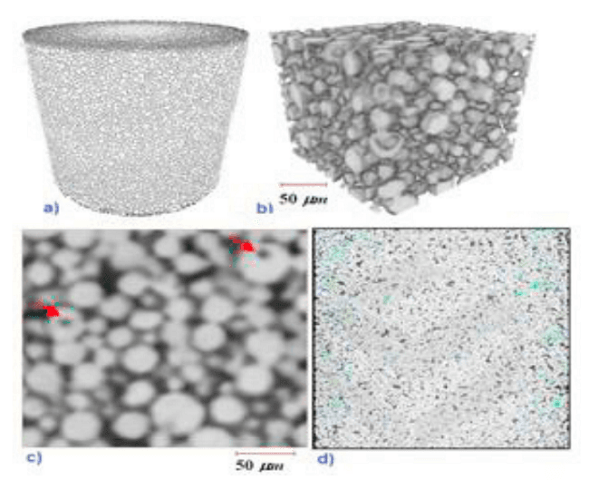 The XCT images were analyzed, and “a region of interest” was chosen, seen above, from which pore size and interior particle distribution were extracted.