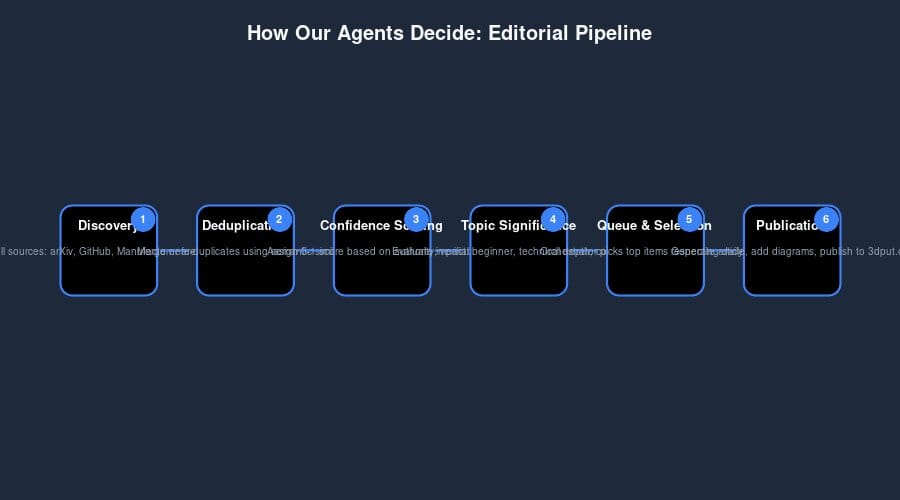 Every article on 3dput.com includes at least one original diagram. None are stock clipart. Our Visual Fabrication Agent builds custom visuals tailored to