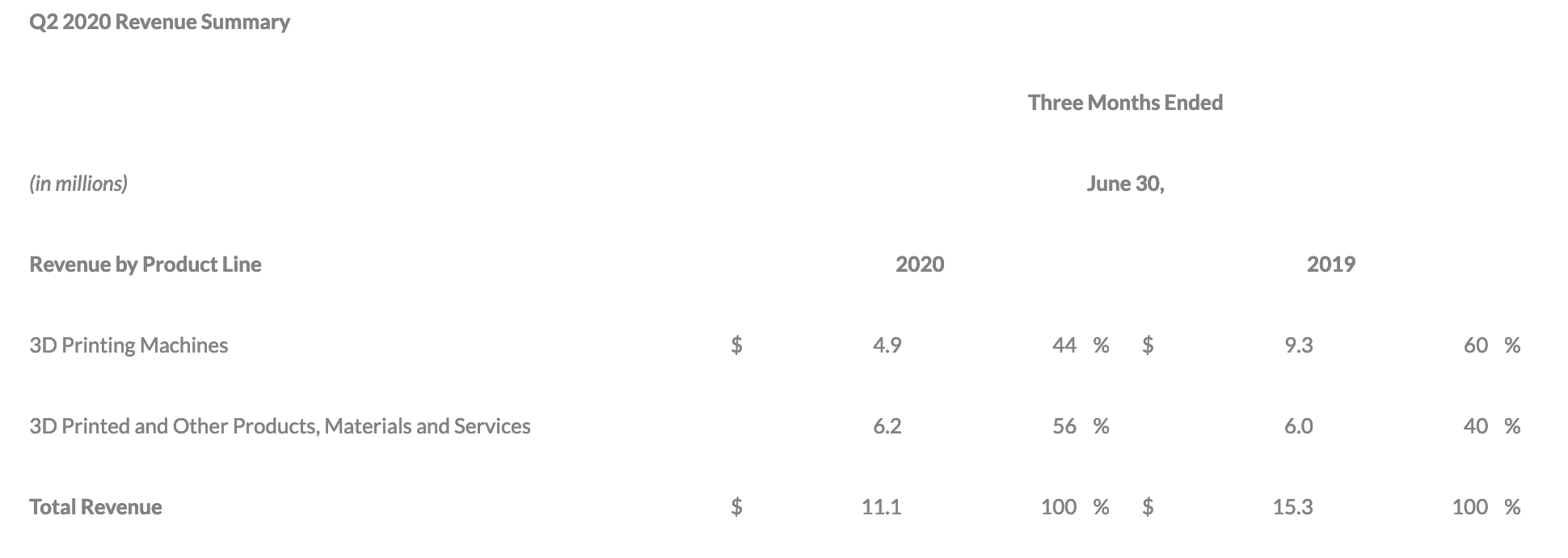 Most AM companies which report public information noted during their Q1 releases that they expected Q2 to be much more heavily impacted by COVID-19. They